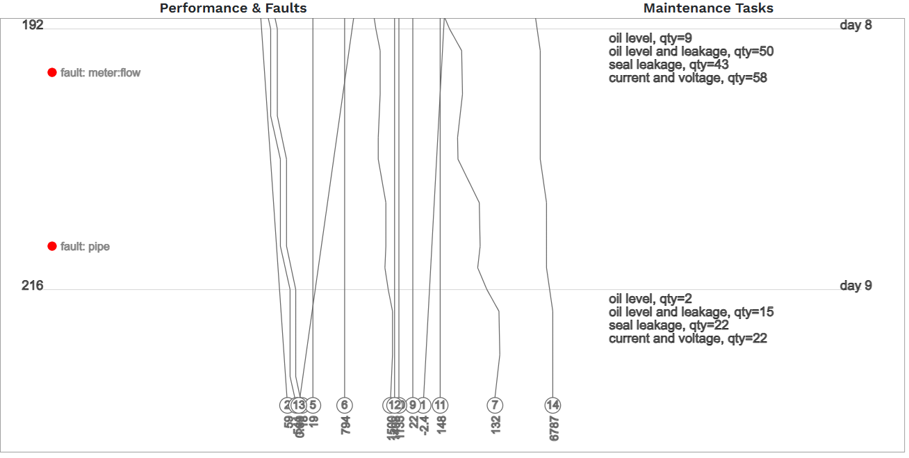 The second output is the failure times of equipment pieces. Some of them do not require the plant shutdown. The third output is the list of preventive maintenance tasks. The superposition of the said three output categories may substantially change the plant operation and maintenance schedule.